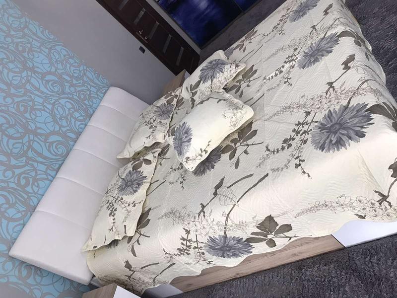 Стильне бавовняне покривало на ліжко Виробництво тканини: Туреччина Матеріал: бавовна 100% (муслін) Щільність: 140г/м2 Упаковка: пвх-пакет Повітряне і неймовірно м'яке на дотик покривало з натуральної, елітної бавовни. Красива фактура тканини створює візуальний об'єм і легкість, при цьому покривало гармонійно вписується в будь-який стиль інтер'єру єру та аксесуарів кімнати. Розмір 2.20-2.40 див. Наволочки 50-70 див. 2 шт. І 50-50 див. 2 шт.
