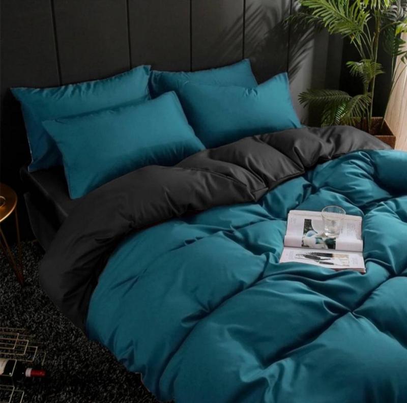 Євро однотонний комплект постільної білизни "чорний, зелений", бязь голд люкс "віталіна"