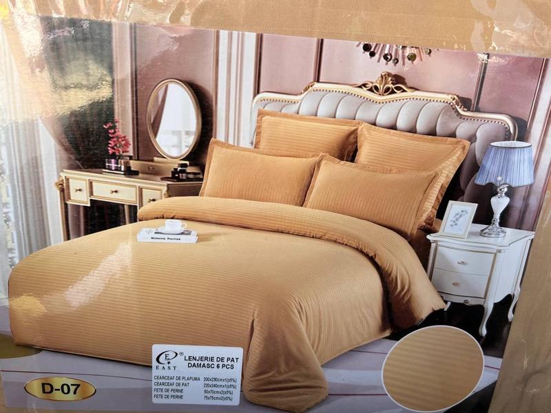 Сатин-страйп вважається класичним еталоном міцності та довговічності. Його виготовляють зі 100% бавовни за допомогою косого переплетення ниток, що надає тканини однорідної структури та блиску, причому без будь-яких синтетичних домішок і добавок. Сатин практично не меніться і не скочується, має блиск, повітропроникність, міцність і м'якість. Вся постільна білизна відповідає гігієнічним вимогам.