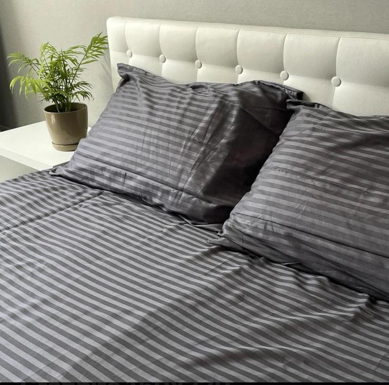 Сатин Страйп (Stripe) - особливістю плетіння такої тканини є смуги, що чергуються (матова-глянцева), звідси і назва матеріалу: в перекладі з англійської stripe і є «смужка». За своїми властивостями Сатин Страйп дуже близький до жакарду, і основна особливість такої тканини полягає в її малюнку: характерні смуги виходять не шляхом друку, а за рахунок особливого переплетення ниток. При виробництві тканини Сатин Страйп використовуються тільки екологічно чисті барвники, які наносяться не на готовий матеріал, а використовуються для забарвлення окремих ниток перед плетінням.Тонка, але міцна, з особливим шовковим блиском. Тканина складається виключно з натуральної бавовни без домішок, відрізняється відмінною якістю. Величезна різноманітність кольорів від спокійних до яскравих і зухвалих просто вразить вашу уяву, а також надихне на сміливі експерименти при облаштуванні своєї спальні. Деталі: основними перевагами комплектів Сатин Stripe є: м'якість і шовковистість; характерні блискучі смуги на лицьовій і виворітній стороні; хороша повітропроникність і гігроскопічність стильний, лаконічний дизайн довговічність; не викликає алергічних реакцій та подразнення. Рекомендації: перша і наступні прання при температурі не вище 40 ° C; перед завантаженням комплекту в пральну машину наволочку і підковдру необхідно вивернути навиворіт, для більш якісного прання. оптимальна температура для прасування - середній температурний режим. Рекомендації догляду: Прати за температури не більш ніж 40 °C, у делікатному режимі.Прасувати за температури до 110 °С. Заборонене використання відбілювачів і засобів хімічного чищення. Сушіння у пральній машині заборонене Увага! Колір і відтінок може відрізнятися, залежно від налаштувань монітора (яскравість, контраст, насиченість), а також освітлення. * Згідно з ЗУ "Про захист прав споживачів" вироби належної якості обміну та поверненню не підлягають!