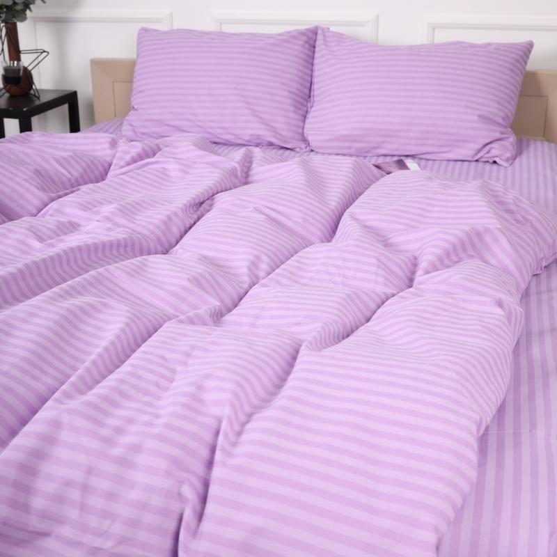 За своїми властивостями Сатин Страйп дуже близький до жакарду, і основна особливість такої тканини полягає в її малюнку: характерні смуги виходять не шляхом друку, а за рахунок особливого переплетення ниток. При виробництві тканини Сатин Страйп використовуються тільки екологічно чисті барвники, які наносяться не на готовий матеріал, а використовуються для забарвлення окремих ниток перед плетінням.Тонка, але міцна, з особливим шовковим блиском. Тканина складається виключно з натуральної бавовни без домішок, відрізняється відмінною якістю. Величезна різноманітність кольорів від спокійних до яскравих і зухвалих просто вразить вашу уяву, а також надихне на сміливі експерименти при облаштуванні своєї спальні.