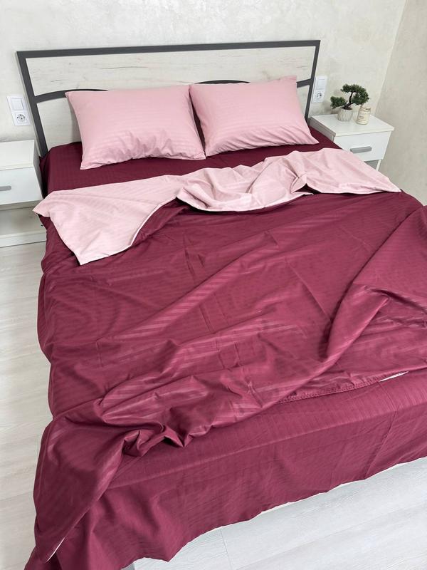 Двоколірна постільна білизна страйп бязь, рожевий+бордо
