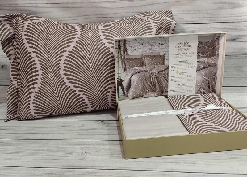 Постільна білизна сатинова євро розмір Belizza Hira pudra Постільну білизну з сатину- оцінять ті, хто любить спати на ніжній, шовковистій постільній білизні! Розмір: євро. Підковдра: 200х220 см - 1 шт. Простирадло: 240х260 см Наволочки 2 шт, 50 х 70 см + 2 шт., 70 х 70 см. Склад: 100% бавовна Виробник: Туреччина Постільна білизна виготовлена з натуральної бавовни, тканина якісна та дорога- сатин. Комплект упакований в гарну подарункову коробку. Дуже гарна постільна білизна з сатину, стане прикрасою вашої оселі. Belizza- це провідна фабрика в Туреччині. Вся її продукція сертифікована і якість на високому рівні. ##