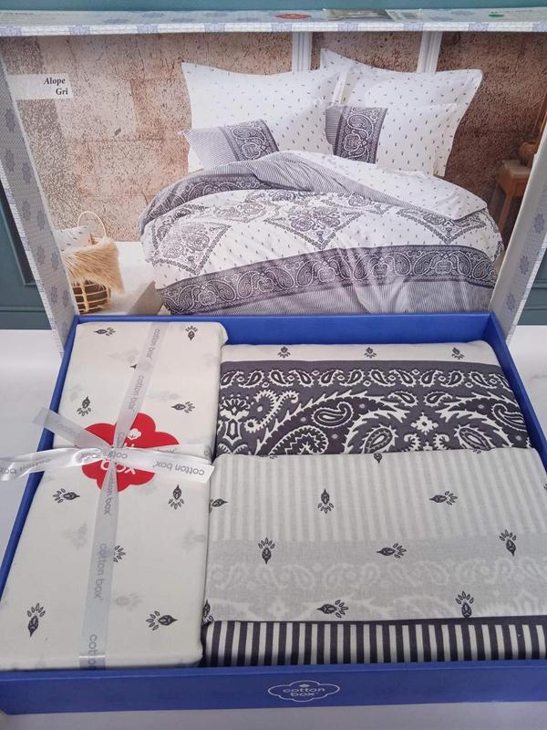 Постільна білизна ранфорс євро розмір Cotton box Alope Gri Розмір: євро. Підковдра: 200х220 см - 1 шт. Простирадло: 240х260 см Наволочки 2 шт, 50 х 70 см. Склад: 100% бавовна Виробник: Туреччина Упаковка: гарна подарункова коробка. Постільна білизна виготовлена з 100% натуральної бавовни. Комплект упакований в подарункову коробку. Гарна постільна білизна Cotton box стане прикрасою вашої спальні. Cotton box - це провідна фабрика в Туреччині. Вся її продукція сертифікована, якість висока. ##