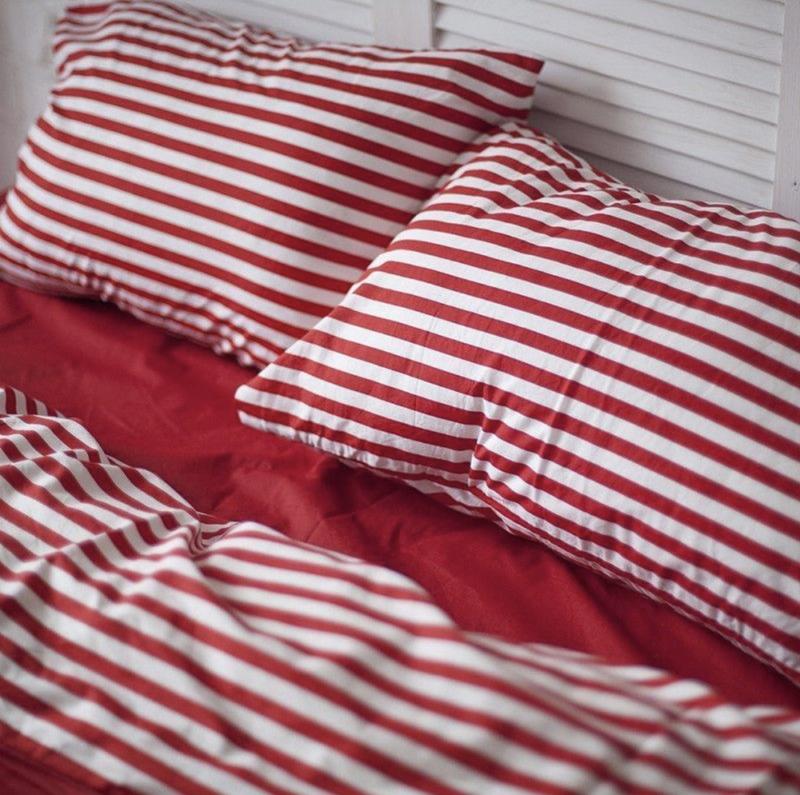 Постільна білизна червона смужка євро бавовна