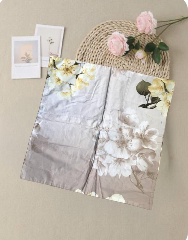 Наволочка бежева сатин 3д малюнок квіти