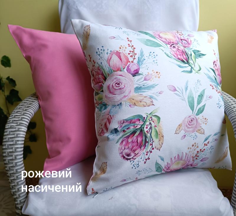 Набір декоративних наволочок 40*40 см рожеві квіти , артишоки та рожева однотона чудово поєднуються між собою