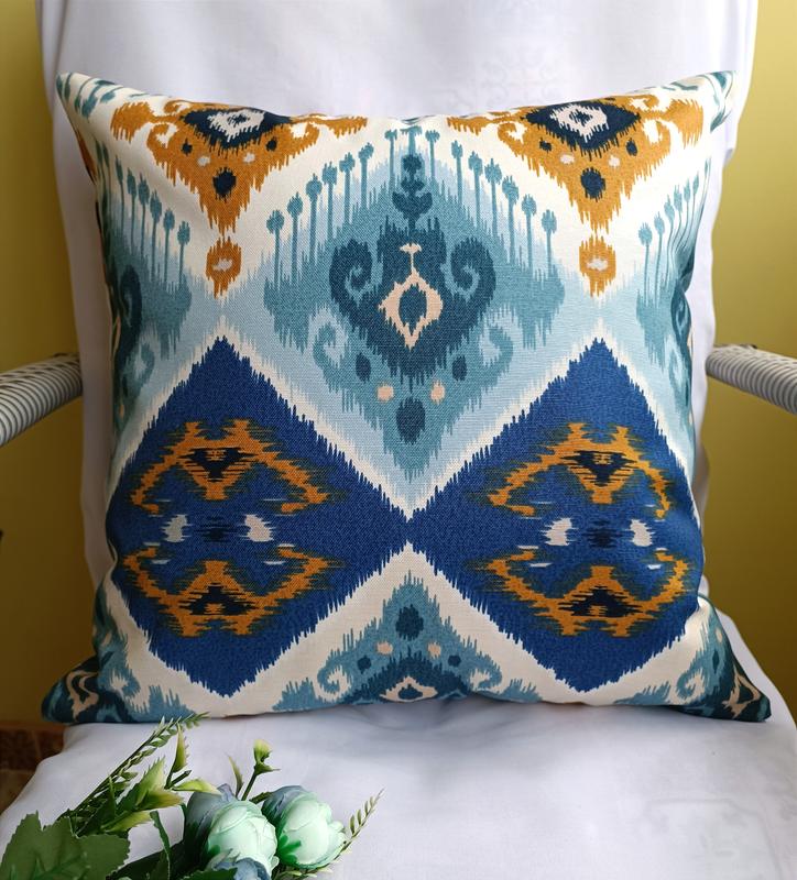Декоративна Наволочка 45*45 см з щільної турецької декоративної тканини з синіми ромбами