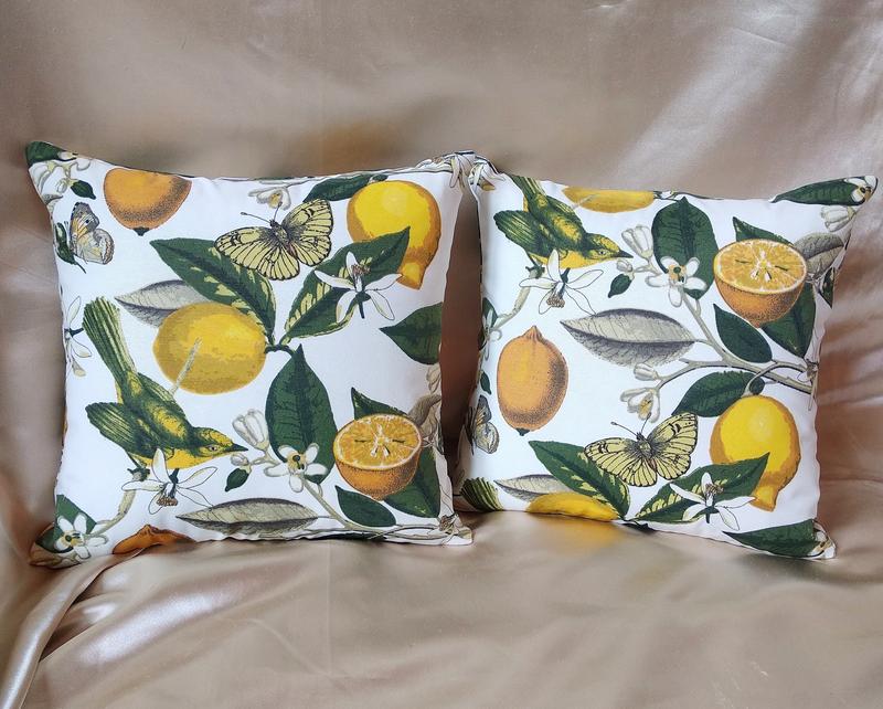 Набор двух декоративных наволочек 35*35 см лимонами с плотной турецкой ткани