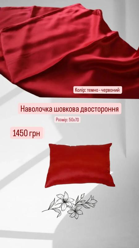 Наволочка з натурального шовку 50х70. Двостороння, 100% натуральний шовк, на блискавці. Колір: темно-червоний. Наволочка з шовку здатна стати не лише вдалим придбанням для вас, але і хорошим подарунком для ваших рідних. Чим же так корисні шовкові наволочки: * Шовкова наволочка - не просто білизна преміум-класу. Це річ, яка сприяє комфортному сну і красі вашої шкіри. Деякі люди считают така постільна білизна є надмірністю, але ті, хто порівняв шовкову наволочку з «колегою» з бавовни, розуміють її переваги. * Насправді наволочка - далеко не другорядна річ. Саме вона регулярно контактує зі шкірою обличчя.