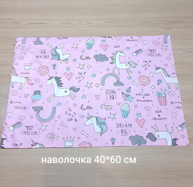 Наволочка 40*60 рожева з єдинорогом з тканини бавовна для декора ліжка або можна спати на цих наволочках, бо вони з натуральної тканини
