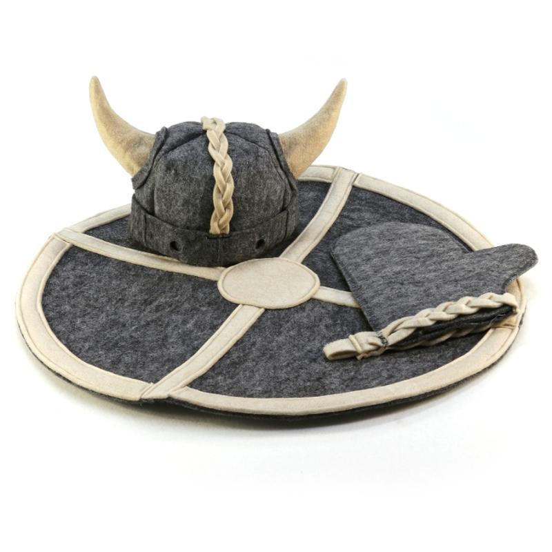 У набір входять: - Сумка "Вікінг" на змійці, всередині непромокаєма, - Шапка "Вікінг", - Килимок "Шит Вікінга" - Рукавиця "Вікінг" - Кілт махровий (парео)
