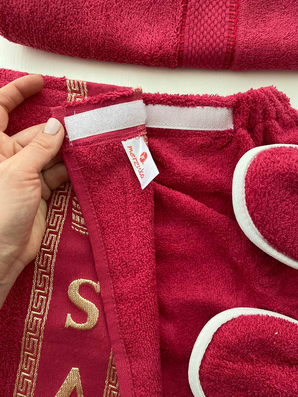 Подарунковий набір для походу в сауну, чудовий і функціональний подарунок для друзів і близьких. У комплект входять: - Тапочки - рушник Лицьове 90х50 см - Банний рушник на липучці 70х150 див., що зручно застібається на талії і підходить практично на будь-який розмір, завдяки резинці, розташованої на спині. Склад: махра, 100% бавовна. Виробник: Merzuka, Туреччина Упаковка: ПВХ 💵Ціна 350 грн