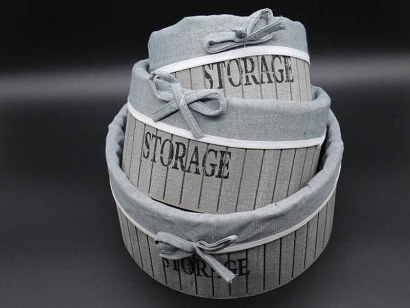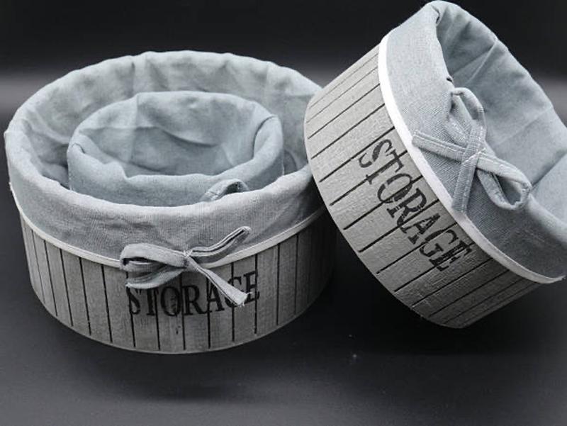 Дерев'яні кошики з тканиною. колір сірий. 28х19х14см