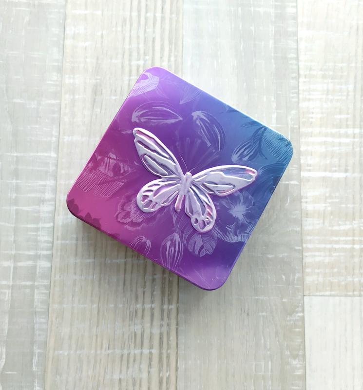 Яскрава гарненька коробочка з метеликом в ідеальному стані. Без подряпин і деформації. розмір 12х12х4,5 см, Відправка лише в коробці, надійно пакую.