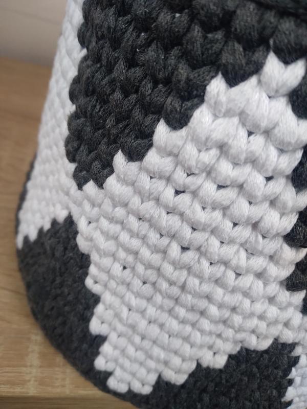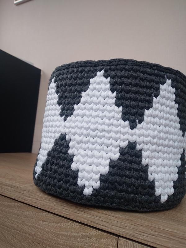 розмір в діаметрі 21см, висота 16см. Доволі великий). Щільний, гарно тримає форму. Розмір та колір за вашим бажанням.