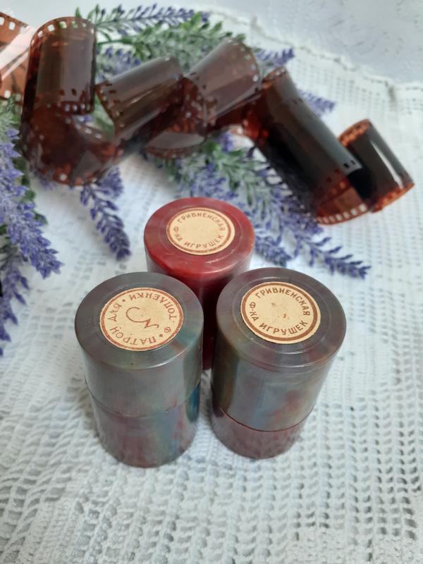 Ексклюзивна довоєнна річ радянського періоду! Ретро патрони для фотоплівки, виробництва Гриневской фабрики іграшок, припинила своє існування з початком війни 1945 року. История фабрики многогранна. Кустари-токари из Бабенок (Московская область) образовали общество токарного производства в 1911, которое позже трансформировалось в артель «Полированная игрушка». Такие же токари из соседнего поселения Гривно (Гривино, рядом с Климовском), чтобы не пропасть, не исчезнуть, тоже основали фабрику – Гривенскую фабрику игрушек в 1934 (до этого, кстати, они делали табуретки). И артель, и фабрика подразумевали, что теперь производство из частного сектора перешло в цеха, а сцентровалось всё в Гривно, поскольку рядом с деревней Гривно проходила Московско-Курская железная дорога, что своего рода было событием и благом – предприимчивые купцы сразу же воспользовались этой возможностью и развернули поблизости разнообразные производства, от ткацкого до фетрового. Фетровую фабрику купца Насонова следует отметить отдельно, поскольку именно в её стенах, расположились объединённые в Гривненскую фабрику игрушек бабенские токари. С началом войны о игрушках пришлось забыть, фабрика опять начала производить изделия из фетра для потребностей фронта.