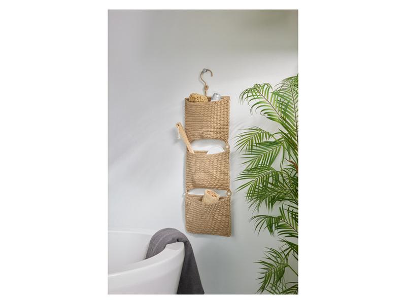 Опис Декоративний засіб для зберігання речей у спальні, ванній кімнаті або гостьовому туалеті Економія місця завдяки можливості складання Підвісний органайзер Легко повісити на двері - в комплекті відповідний гачок 3 відділення для зберігання Макс. вантажопідйомність кожного відділення: приблизно 0,5 кг Набір кошиків для зберігання Також для використання в шафі або на полиці Штабелюваний – економія місця для зберігання Макс. вантажопідйомність кожного кошика: приблизно 0,5 кг Комплект із 2 предметів Розміри Підвісний органайзер: прибл. 78 x 29 x 2 см (В x Ш x Г) Комплект кошиків для зберігання: прибл. 14 x 30 x 18 см / приблизно 11 x 20 x 15 см (В x Ш x Г)