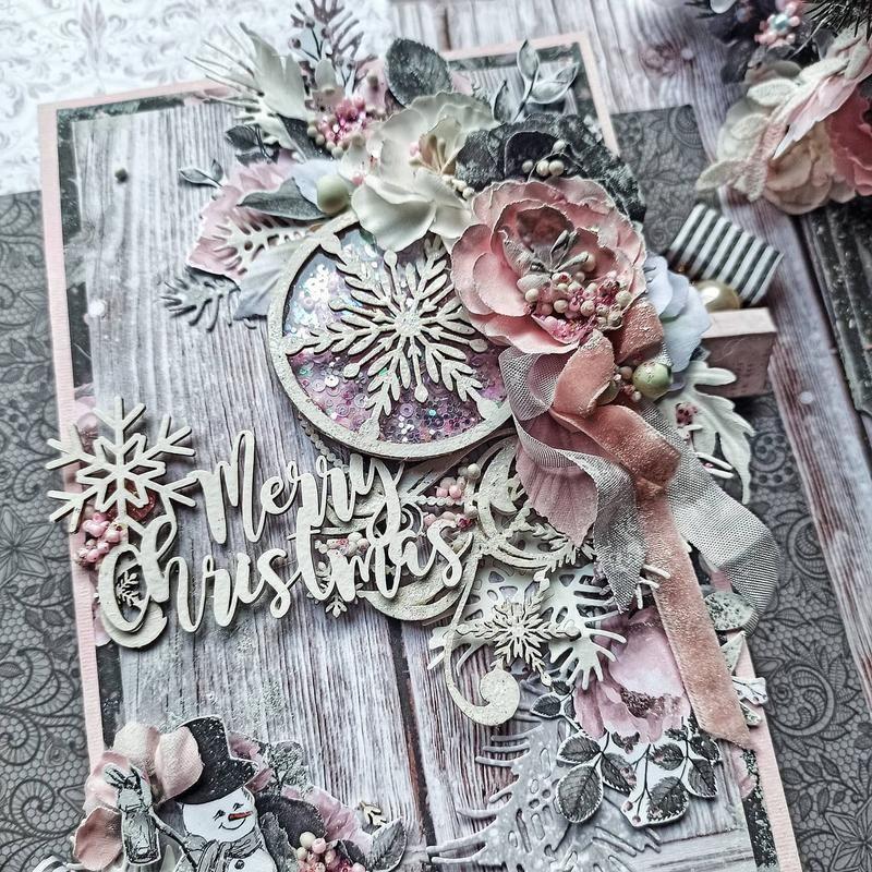 Оригінальна листівка для привітання з Різдвом або Новим роком. Прикрашена шейкером з шарудливим наповненням, паперовим і тканинним декором. Всередині - місце для самих душевних побажань. Можна додати кишенька для грошового подарунка.