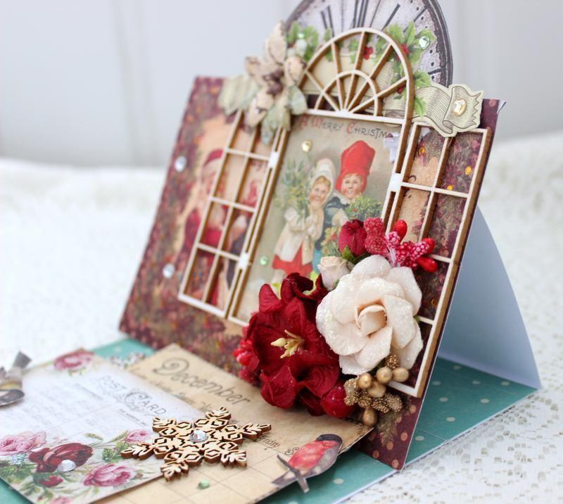 Розкладна різдвяна листівка ручної роботи з об`ємними квітами та різним декором. Товар виготовляється на замовлення