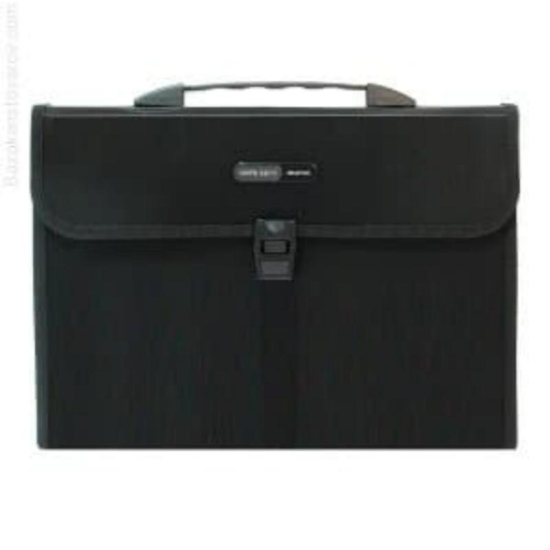Портфель картотека пластиковий "Стандарт" 12 відділень. Виробник: DATA BANK. Колір чорний. Виготовлений із чорного пластику. Має ребристу структуру. Кольорові індекси-індикатори допоможуть сортувати документи на тему. Розмір: 330*250*25 мм.