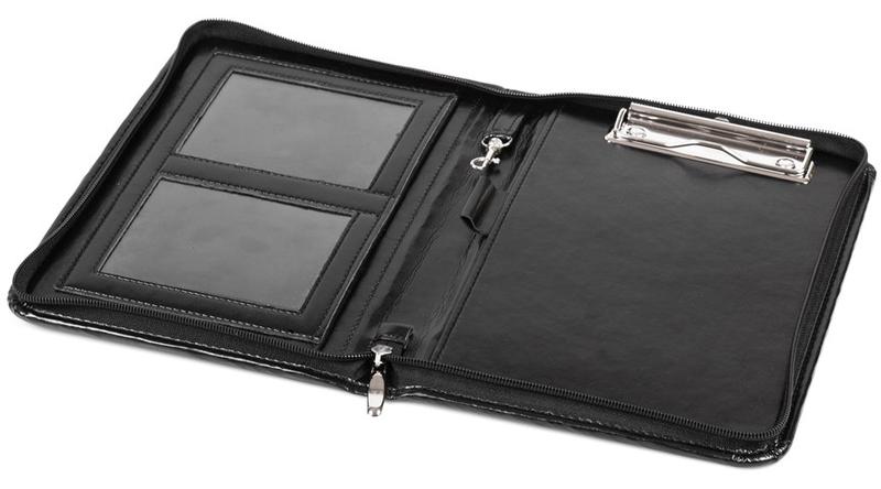 - Папка з якісної штучної шкіри застібається на блискавку.