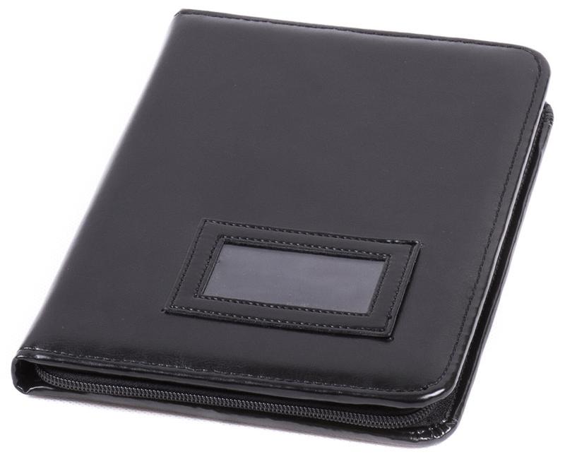 - Одна прозора кишенька для бейджа із зовнішнього боку папки.