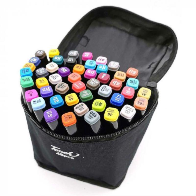 Спиртовые маркеры Touch для тех, кто увлечен рисованием и каллиграфией, любит создавать комиксы и живописные эскизы. В наборе 48 маркеров разных цветов. Корпус пластиковый, гладкий. Колпачки плотно закрываются. Для удобства распознавания типа пера концы маркеров окрашены разным цветом. Каждый цвет имеет свой цифровой код, который нанесен на колпачок маркера. Чернила на спиртовой основе хорошо впитываются в бумагу, поэтому рекомендуется использовать плотные листы или картон. Цвета хорошо смешиваются между собой, переход оттенков плавный. Хороший выбор оттенков для кожи человека Длина маркера 15,5 см. Характеристики набора маркеров: Тип: Маркер; Маркер двусторонний; Острый наконечник; Плоский наконечник; Основа чернила: спиртовая; Цвет: разные цвета; Количество в упаковке: 48 (шт.); Комплектация набора маркеров: Маркеры: 48 шт; Сумка-чехол для маркеров. Маркеры для рисования и скетчей в пластиковом футляре . Двусторонние, на спиртовой основе. В наборе 48 шт. Основная палитра, оптимально подобрана для рисования всех стилей. Скетч-маркеры Aihao - это безграничные возможности для ваших рисунков по демократичной цене! Отныне даже простой набросок может стать шедевром, ведь цветопередача новых спиртовых скетч-маркеров впечатлит даже опытных художников! 48 оттенков - от холодного синего до горячей охры. Два типа наконечников: стандартный для толстых линий с одной стороны, а также долото - для штрихов сменной толщины с другой. Чернила на спиртовой основе.