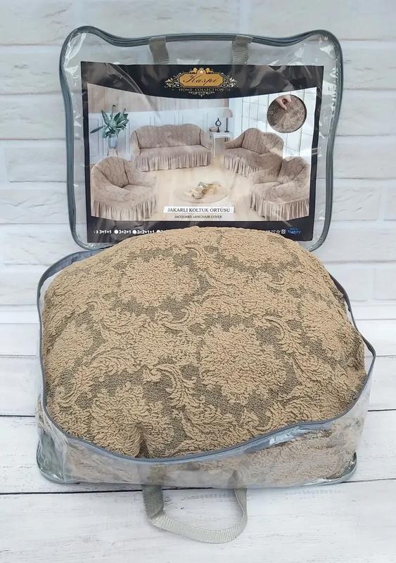 Чохли жаккардові натяжні на диван і 2 крісла rose туреччина бежеві