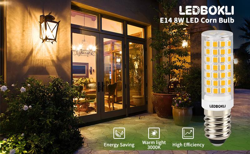 LEDBOKLI 6 шт. світлодіодні лампи E14 8 Вт теплий білий 3000K світлодіодні