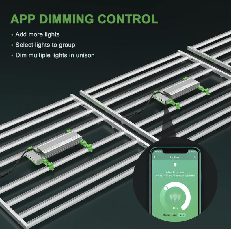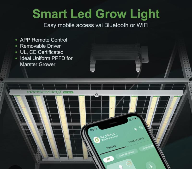 Оновлена версія 2023 року світильника для вирощування рослин FC6500 SMART із найсучаснішими діодами Samsung LM301H EVO та Osram 660nm та опцією підключення до телефону за допомогою програми Mars Hydro APP