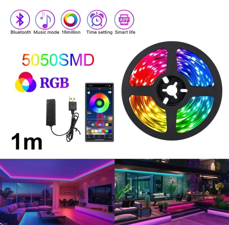 1-метрова світлодіодна стрічка rgb багатокольорова з додатком для телефону світлодіодна ст...