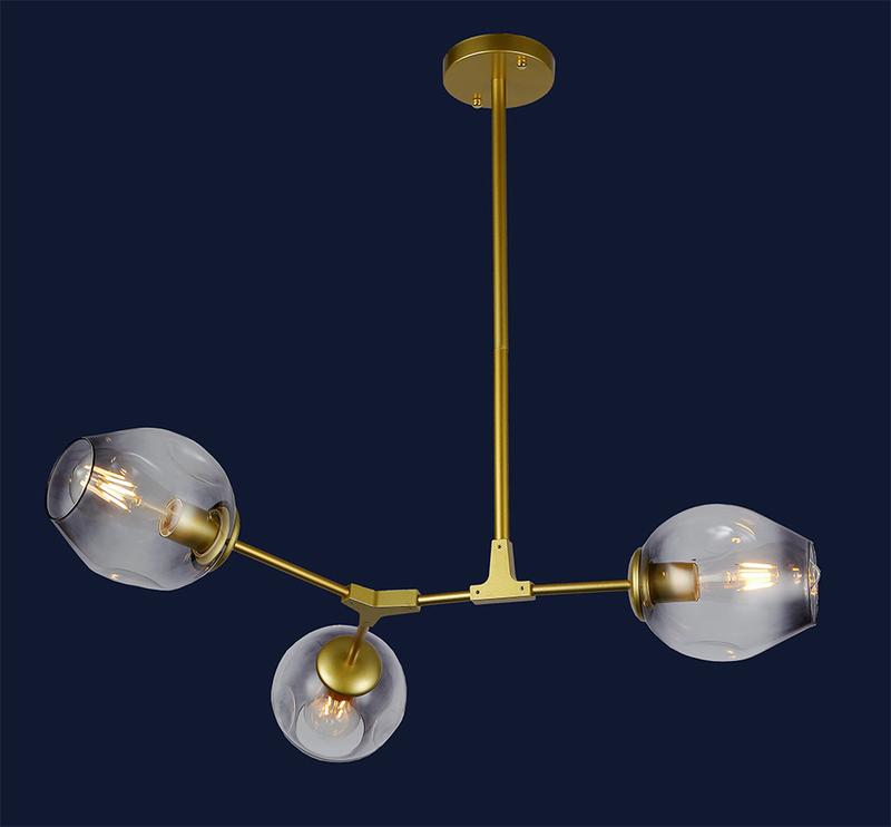 Матеріал люстри: метал + скло Колір корпусу: золотий Колір плафонів: чорний градієнт (чорний, що переходить у прозорий) Кількість плафонів - 3 Розмір люстри - 600*750 мм Висота люстри регулюється Тип кріплення - стельовий коло Кріплення до стелі (підстава) колір - золотий Матеріал кріплення - метал Джерело світла - 3 ламп Е27 Максимальна потужність лампочки 60 Ватт Можливість використання лампи: LED, розжарювання, енергозберігаюча Комплектація лампочками: Немає Виробник Levistella