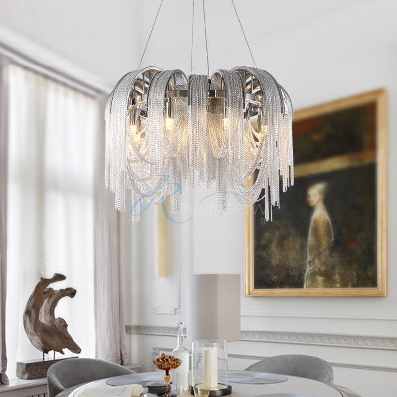 Люстра кругла з дрібних ланцюжків менша 4388/D600 Кількість джерел світла: 6; Тип лампи: E 14; Тип цоколя: E 14; Потужність лампи: 40.0 Вт; Напруга мережі: 220 В; Колір: алюміній; Стан: Новий Додаткові характеристики. Матеріал: метал