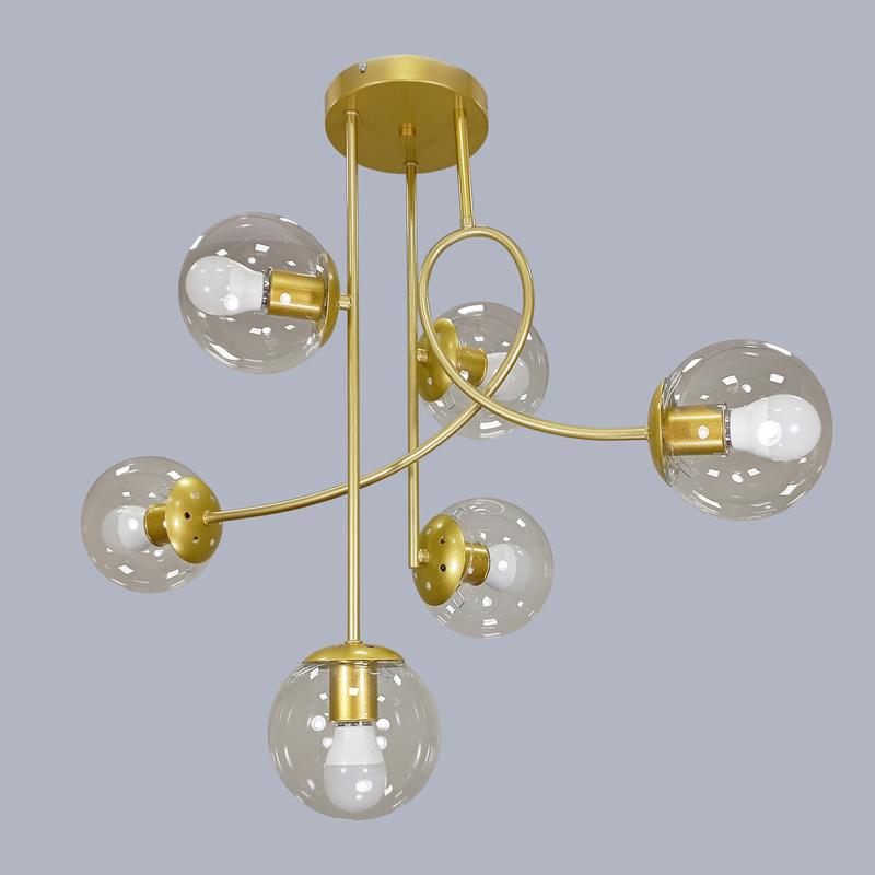 Стильна люстра на 6 ламп яскраво освітлить передпокій, спальню, кухню. Прозорі