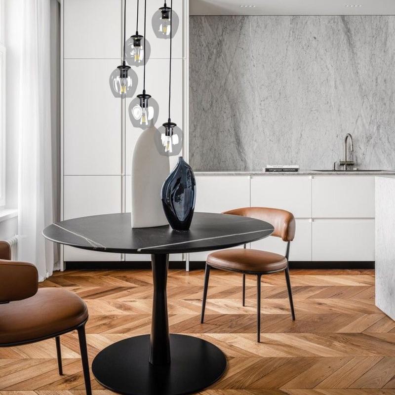 фарбою, його доповнюють прозорі скляні плафони, що створює стильне поєднання.