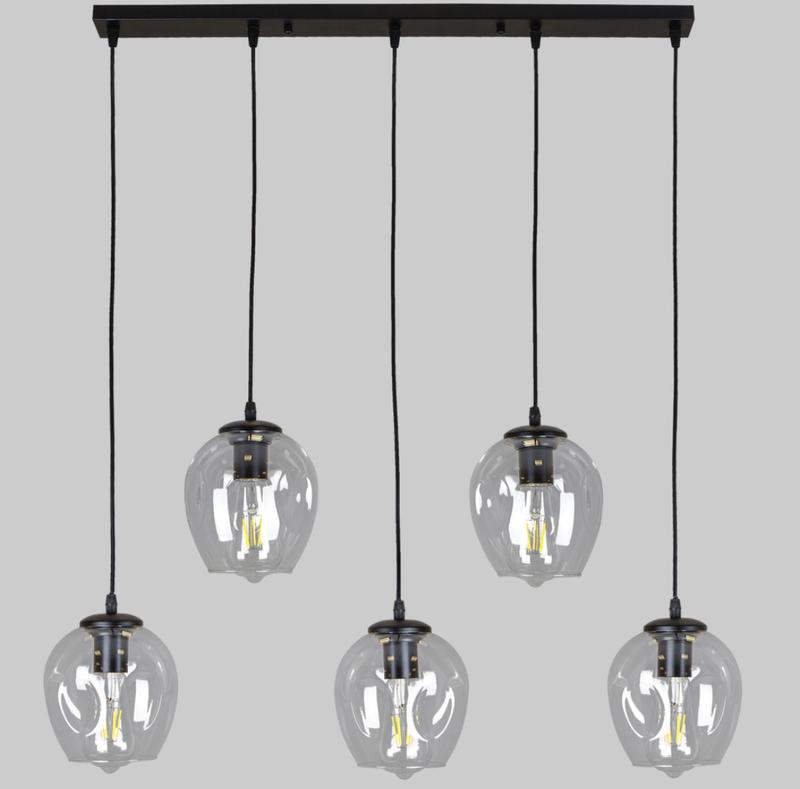 Цікава та стильна люстра ідеально доповнить ваш інтер'єр. Унікальна люстра підійде до інтер'єру у стилі лофт, мінімалізм, модерн тощо. Вона ідеально доповнюватиме вашу спальню, вітальню, кухню у вашому будинку/квартирі або, наприклад, кафе, ресторані. Корпус зроблений з металу та покритий чорною фарбою, його доповнюють прозорі скляні плафони, що створює стильне поєднання. Регулюється довжина кожного підвісу окремо (20-120см), завдяки чому можна встановити висоту люстри максимально комфортно. Люстра розрахована на 5 ламп і даватиме достатньо освітлення для приміщення 15-20 кв.м. - Матеріал - метал, скло - Колір металу - чорний - Колір скла - прозорий - Джерел світла - 5 - Цоколь патрона - Е27 - Розмір плафона - 14,5х16см - Довжина стельової основи - 70см - Висота кожного плафона регулюється окремо від 20 до 120см Інтернет-магазин ***************