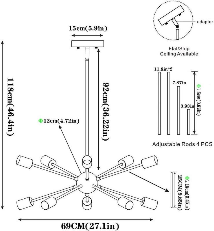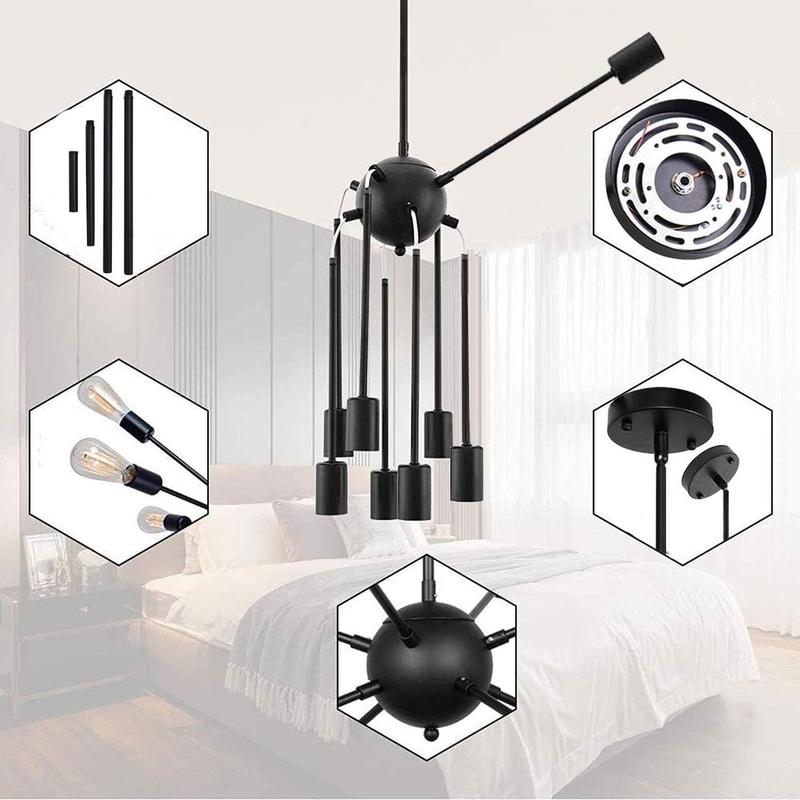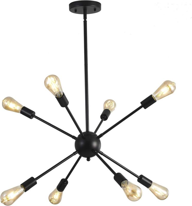 SUSVQLXG Sputnik Люстра Світильник 8 ламп E26 Чорний Сучасний світильник для