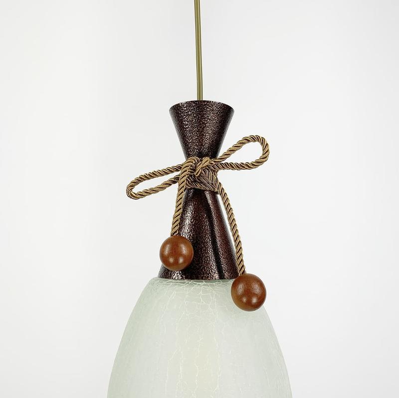 - Підвісна конструкція: Поодинокі скляні світильники часто підвішуються за допомогою тонкого дроту або ланцюга, що додає вишуканості та дозволяє регулювати висоту підвісу.