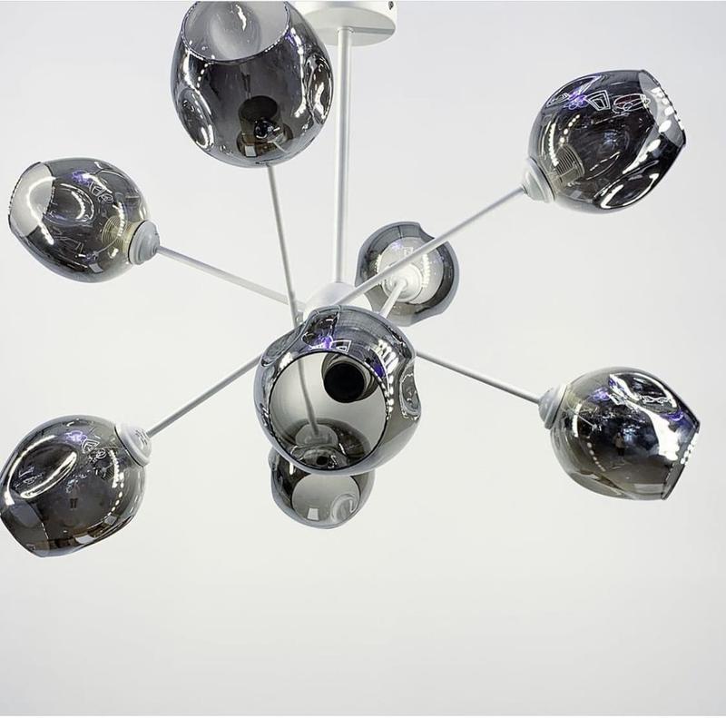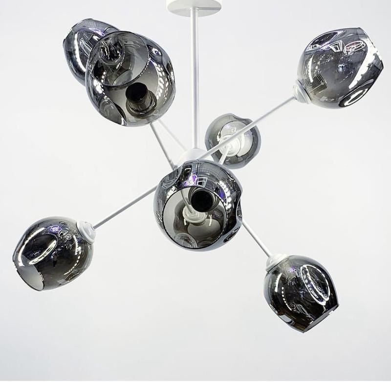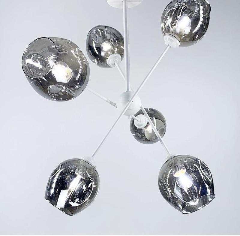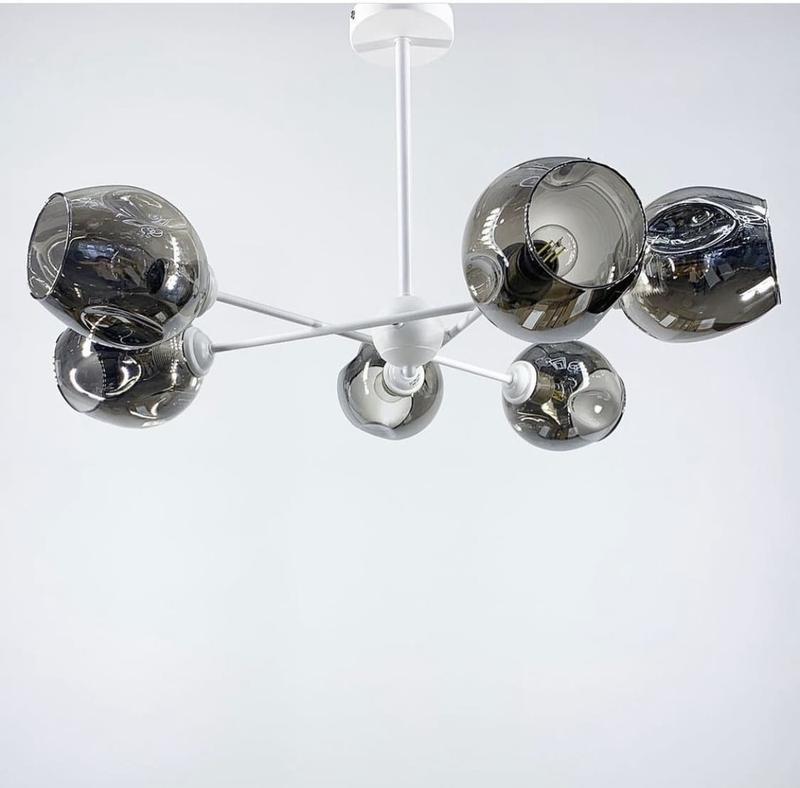 Стельова модель у сучасному стилі в корпусі білого кольору із плафонами графітабо янтар, одразу приверне увагу Завдяки рухомому механізму на корпусі можназмінювати положення ріжків