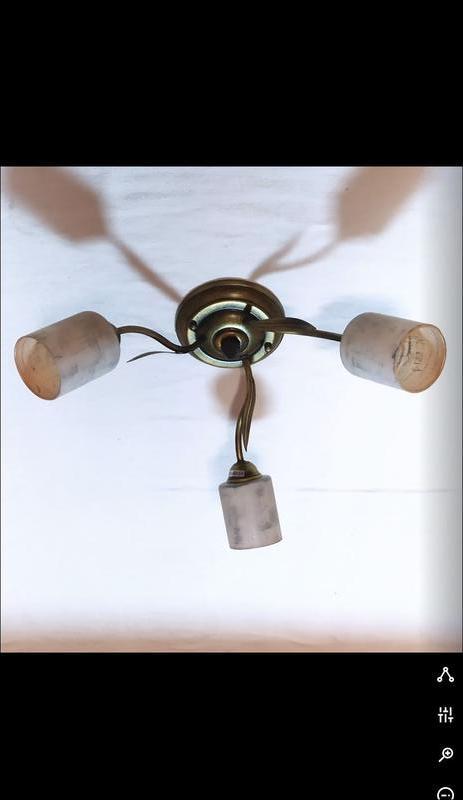 Люстра на 3 плафониМатеріал корпусу — металМатеріал плафонів — склоКолір корпусу — патинована бронзаТип патрона — E27---Надсилання компаніями Нова пошта, Укрпошта, Міст