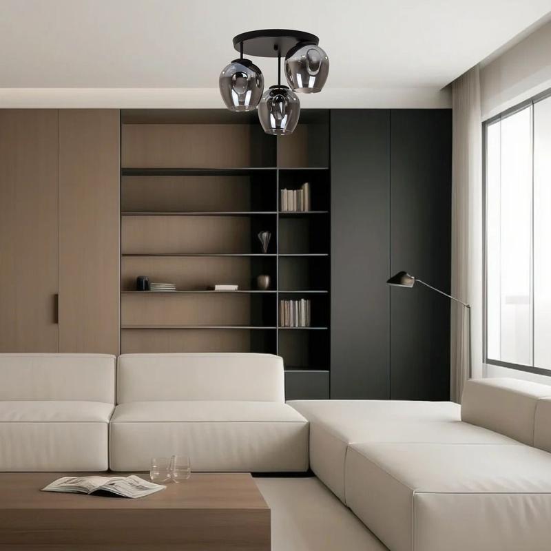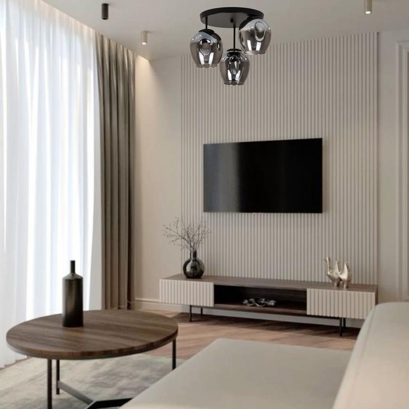чорною фарбою, його доповнюють скляні графітові плафони, що створює стильне