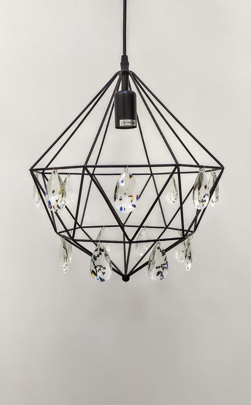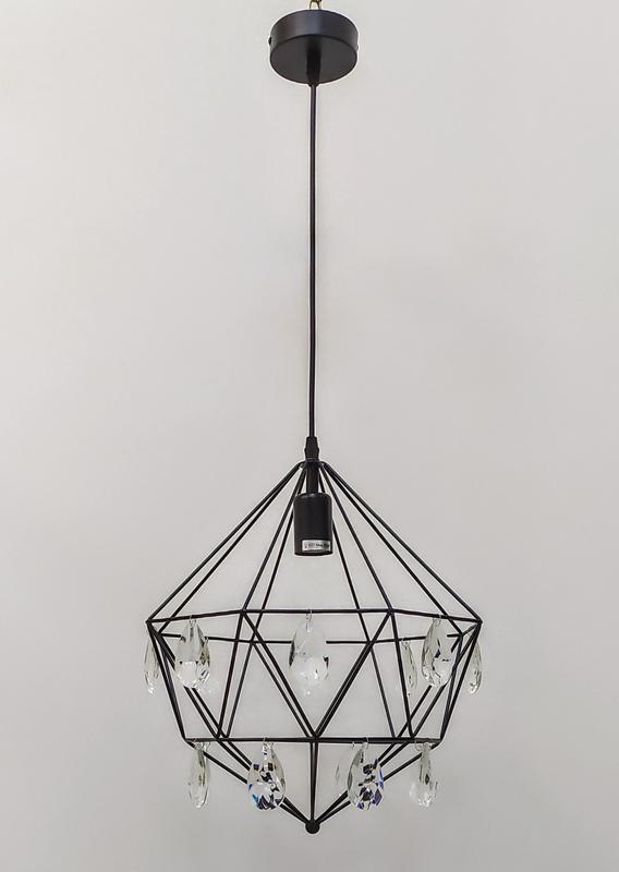 Люстра підвіс світильник у стилі лофт з кришталевими підвісками Колір основи - чорний Тип цоколя - E27 Кількість ламп - 1 Висота 40-100 см, діаметр - 35 см --- Відправка компаніями Нова пошта, Укрпошта, Джастін