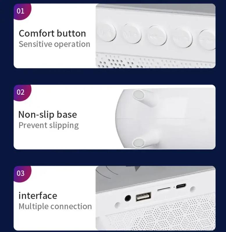 працює як нічник, будильник, відтворює музику з телефона, а також підтримує