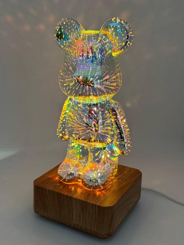 3D нічник "Скляний Ведмедик" - скляна прикраса стильного декору з тривимірним ефектом феєрверку. Прикрасьте свій інтер'єр унікальним та чарівним декоративним світильником у вигляді ведмедика. Цей стильний та сучасний аксесуар, виготовлений у формі кубічного ведмедя, стане чудовим елементом декору для будь-якої кімнати. Цього нічника недостатньо, щоб висвітлити вашу кімнату, але він може створити у вашій кімнаті чудову атмосферу.Ця світлодіодна скляна лампа стане чудовим подарунком для будь-якого свята як для дитини, так і для дорослого. Нічник доповнить декор кімнати, і навіть якщо ви не вмикаєте світло, він все одно виглядає дуже круто. ОСОБЛИВОСТІ: - Зміна кольору; - Тип джерела світла: світлодіод; - Індекс передачі кольору (CRI) 80.00; - Тип лампи: нічник; - Колір абажура: багатобарвний; - Матеріал абажура: акрилонітрил-бутадієн-стирол, скло, дерево; - Основний матеріал: дерев'яна основа; - Джерело живлення: USB; - Форма: форма ведмедя; - Спосіб перемикання: кнопка; - Напруга 5 вольт. ХАРАКТЕРИСТИКИ: - Живлення - USB кабель (від блочка або павербанка); - Кольорів світіння - 8; - Режимів роботи - 2 (плавне і швидке перемикання кольорів); - Перемикач - на кабелі; - Довжина кабелю - 1.5 м; - Розмір: В-20см, Ш-9см, Д-9см.