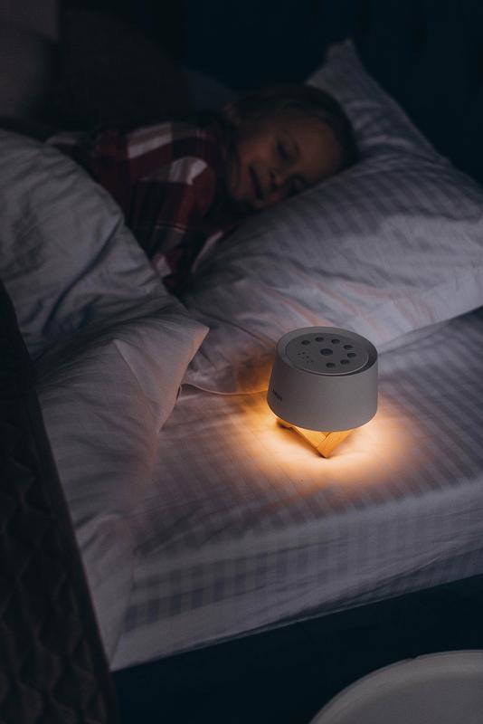 Багатофункціональний нічник з 31 звуком, серед яких є білий шум, звук вентилятора , звук дощу, шум океану, звуки природи, колискові та інші звуки. Два режими освітлення, що допоможе змінити вночі підгузок так, щоб малюк не проснувся. Є регулятор гучності. Можна встановити таймер на 30, 60, 120хв . Може йти як нічник з дерев'яна яною підставкою, так і без, а отже зручно його брати з собою. Нічник заспокоює не тільки малюків , а й допомогає швидше і солодше спати дорослим. Один заряд тримає 72 год відтворення без заряду
