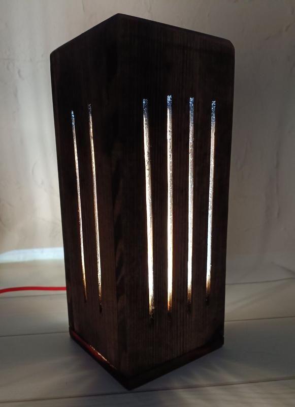 Ліхтар з світодіодною підсвіткою. Матеріал-сосна. Покриття-масло віск. Висота . Працює від кабелю мікро юсбі.Додаткові характеристики: Матеріал: ДеревоТип: Нічник