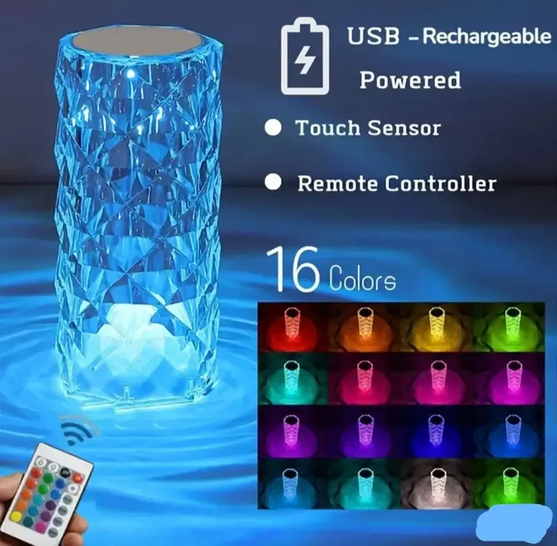 Кришталева настільна лампа, rgb лампи з сенсорним датчиком "рожевий дотик"