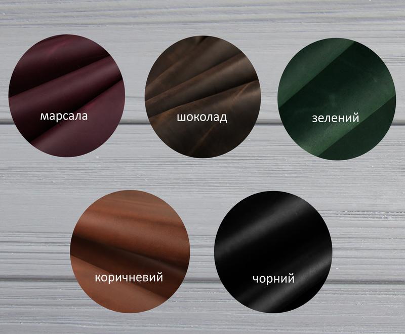 - Матеріал: натуральна високоякісна шкіра Crazy horse. Шкіра матова, гладка, щільна але мяка, приємна на дотик