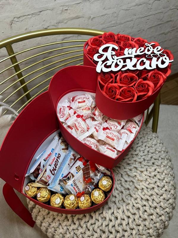 Подарунковий бокс з фереро,рафаело та мильними трояндами